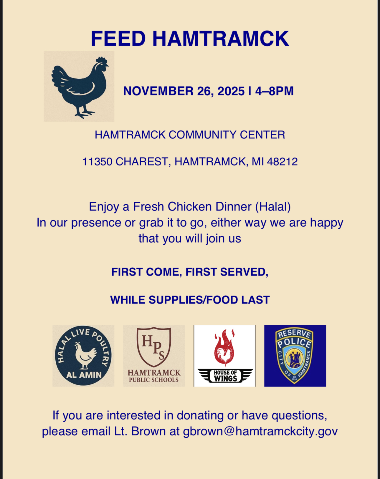 If you are interested in donating or have questions, please email Lt.Brown at gbrown@hamtramckcity.gov